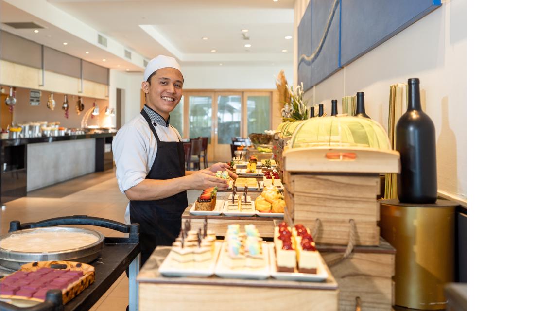 - Montar e reabastecer o buffet para todas as refeições;